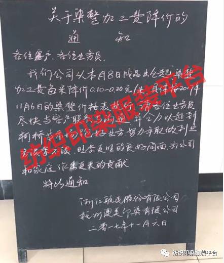 △航民股份:11月8日起染費降價0.10~0.20元/米