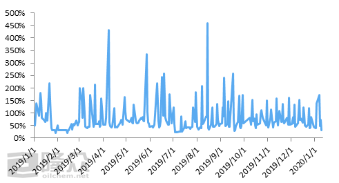 2020年伊始,伊朗將軍遇襲,伊美關系進入僵局,伊朗發起攻擊,油價持續收高,聚酯原料也相應上調,滌綸長絲單日總體產銷在200%附近,個別高端在800%-1000%。