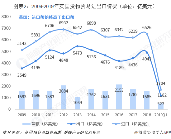 2、英國貿易結構整體呈逆差狀態