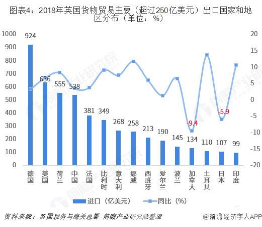 4、英國的進口來源國分析:中國是英國進口來源第四大國