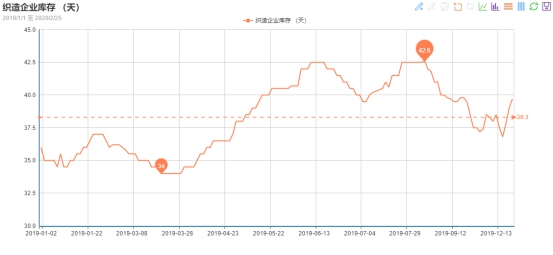 但這只是現階段的情況,等疫情一旦得到有效的控制或者提前結束,織造企業人員的返崗率將得到大幅度的提升,到時候織機的開機率自然也跟著上去了。因此,我們不能忘記前兩年織造市場外圍織機大幅興起導致的產能過剩對整個紡織市場影響多大:倒閉、減產、拋貨屢見不鮮,織造企業的庫存更是達到了近幾年的巔峰。從中國綢都網統計數據來看,織造企業2019年最高坯布庫存要達到43天左右。
