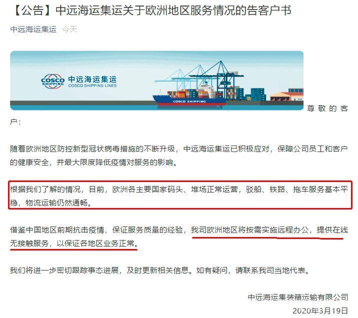 多個歐洲國家都強調,國際貨運活動將繼續進行。中遠海發布公告: