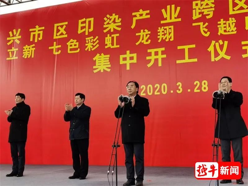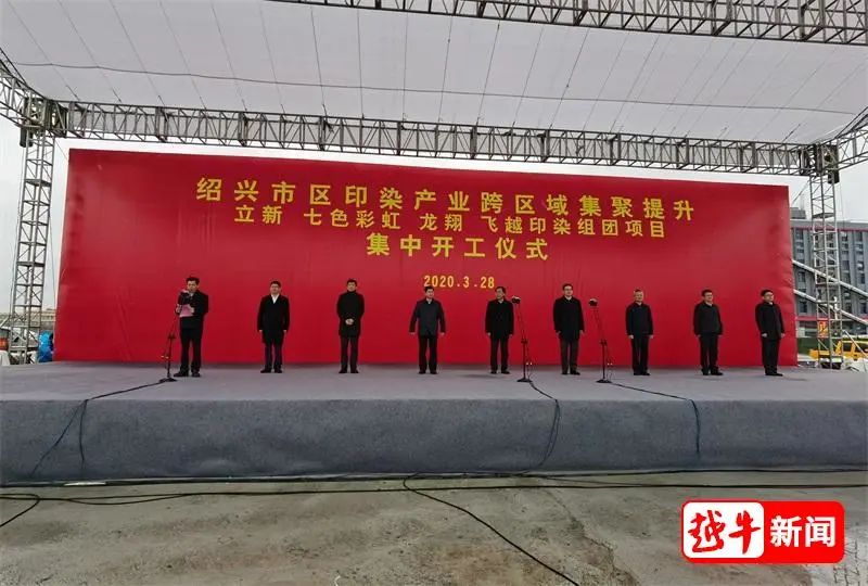 3月28日上午,紹興市區印染化工產業跨區域集聚提升——立新、七色彩虹、龍翔、飛躍4個印染組團集中開工儀式舉行。至此,加上去年12月28日開工的國周印染組團項目,全市5大印染組團已全部落地開工。市委書記馬衛光宣布項目開工,市委副書記、市長盛閱春致辭。市領導譚志桂、魏偉、陸維、邵全卯參加。